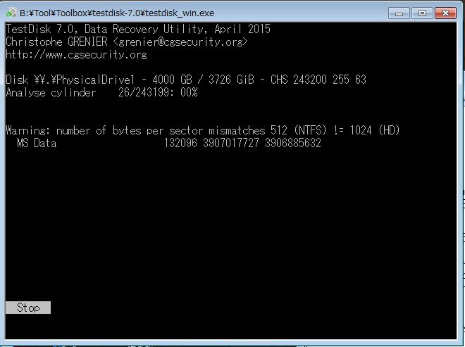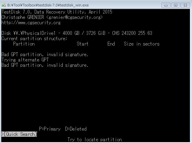 HPの「TestDisk」の使い方、「TestDisk」によるPBRの修復を試みましたが、