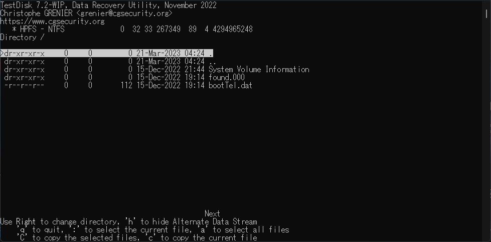 testdisk を使用すれば復旧できるかもしれない、という情報を頼りに試しましたが上手くいきません。